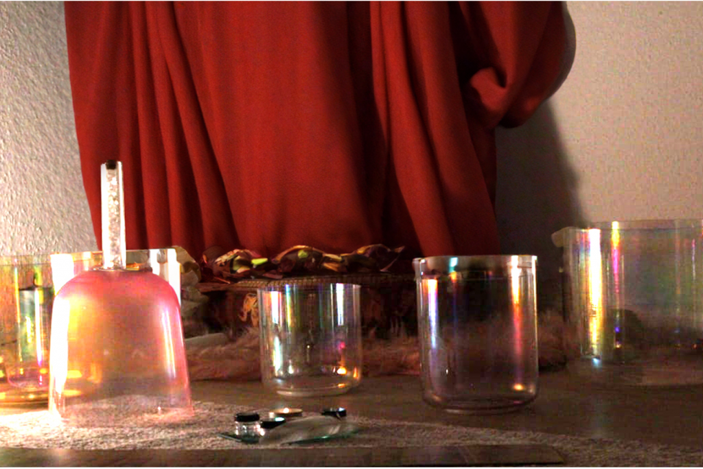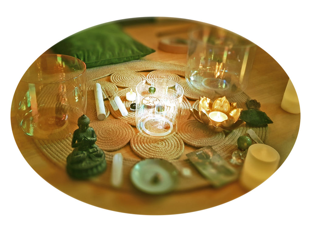 “Ich biete Klangmeditationen mit Kristall-Klangschalen, tibetischen Klangschalen und anderen Instrumenten.